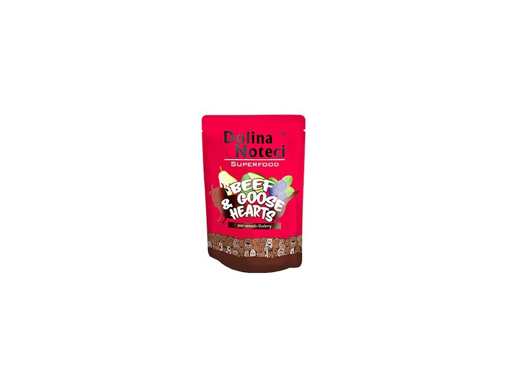 Kompletní bezobilné krmivo pro dospělé psy, kapsička s hovězími a husími srdíčky.