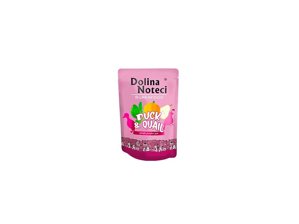 Kompletní bezobilné krmivo pro dospělé psy, kapsička s kachním masem a křepelkou.