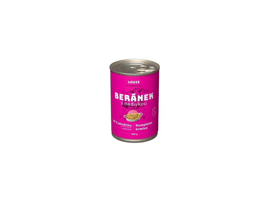 Kompletní krmivo bez obilnin pro psy každého věku i plemene, beránek s nádivkou je limitovaná edice, která nabízí Vašemu miláčkovi možnost stravy z kvalitní jehněčí suroviny (95 % z pevné složky). Jako doplněk pro podporu peristaltiky střev a simulaci minoritní rostlinné složky v potravě psů slouží drobná příměs mrkve, pastiňáku a špenátu. Krmivo neobsahuje žádné konzervanty, dochucovadla a barviva.