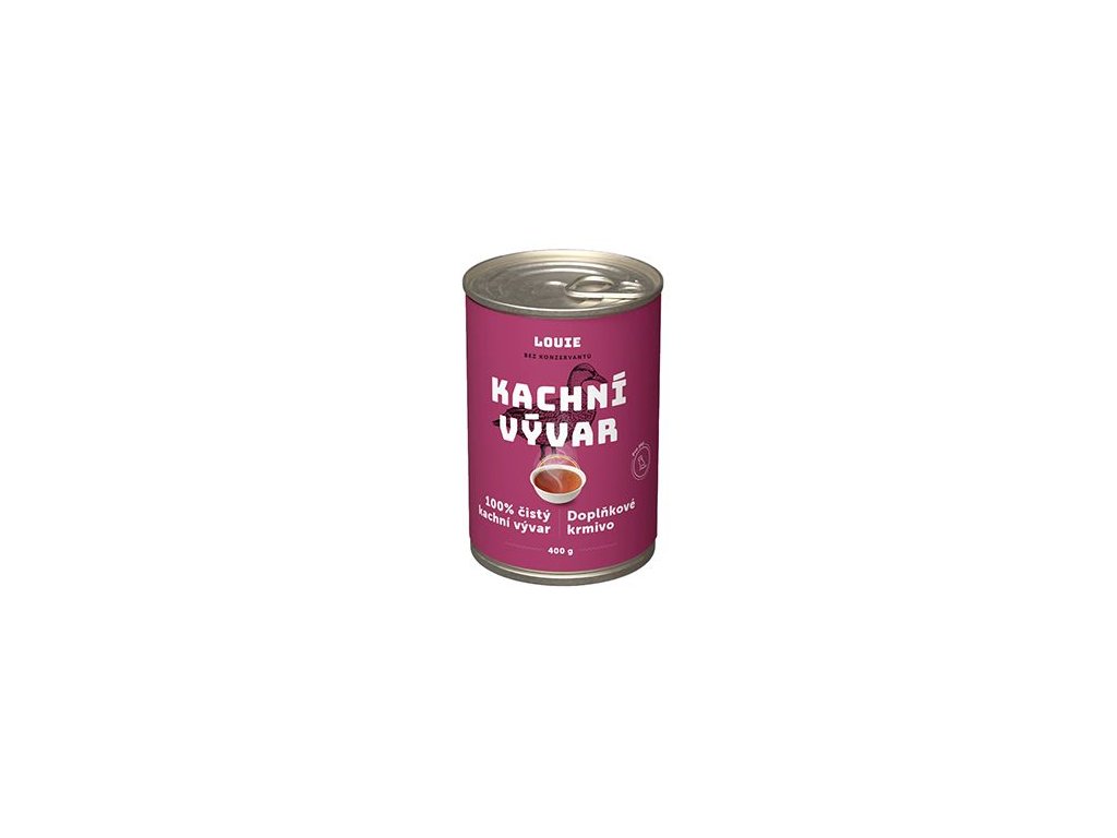 Doplňkové krmivo bez obilnin pro psy každého věku i plemene, v podobě čistého kachního vývaru je ideálním zpestřením jídelníčku Vašeho psa, např. při přeučování z granulí na konzervy nebo vhodnou dietní pochoutkou v horkých letních dnech.