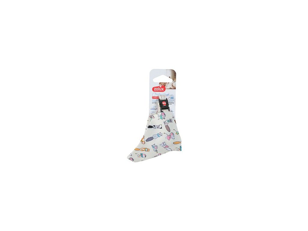 - Snímatelný a pratelný šátek z bílé látky s potiskem koček a myší