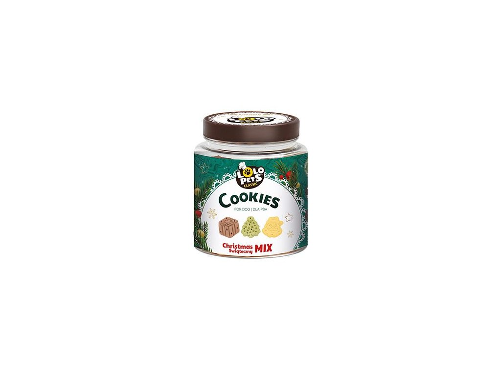 Vánoční edice křupavých pamlsků pro psy v praktické plastové dóze s víčkem.