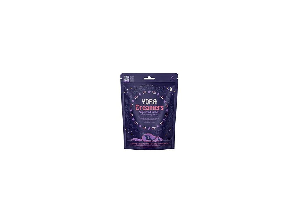 Pamlsky Yora Dreamers z hmyzího proteinu jsou jedinečné z mnoha důvodů. Hmyzí moučka jemně zapečená s ovsem, cizrnovou moukou doplněná mučenkou, rmencem, kořenem kozlíku lékařského a meduňkou tvoří pamlsky, které zklidňují úzkostné psy. Složení pamlsků Yora Dreamers pomáhá psům také relaxovat před spaním nebo v situacích, kdy se cítí nervózní.